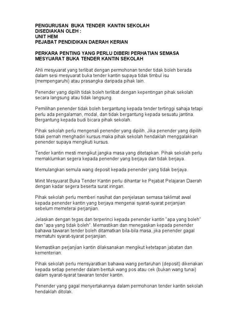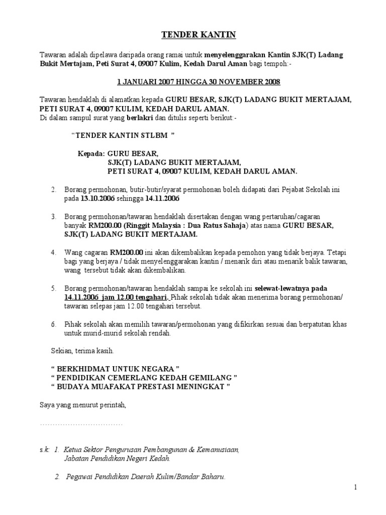 2012 08 01 prosedur mohon kantin sekolah. Contoh Surat Permohonan Kelulusan Bahan. Contoh Surat Tawaran Tender Kantin Sekolah.
